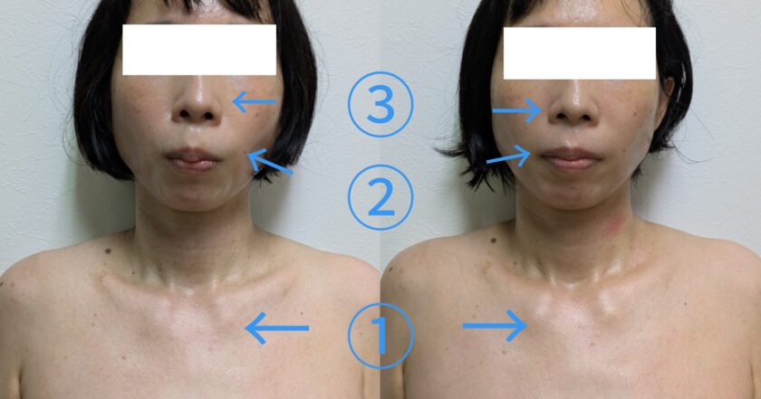 ②ストレートネック改善でアゴが前に出ていたのが引っ込んだ!鼻下の膨らみも無くなりました